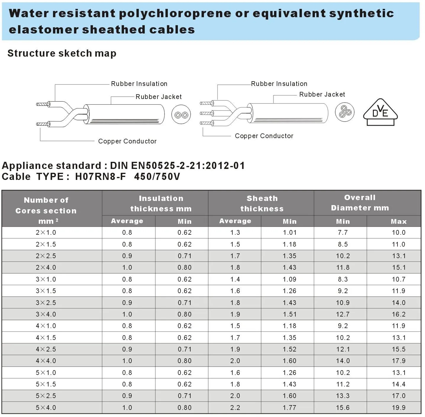 欧洲VDE认证防水橡胶线水泵橡胶线H07RN8-F