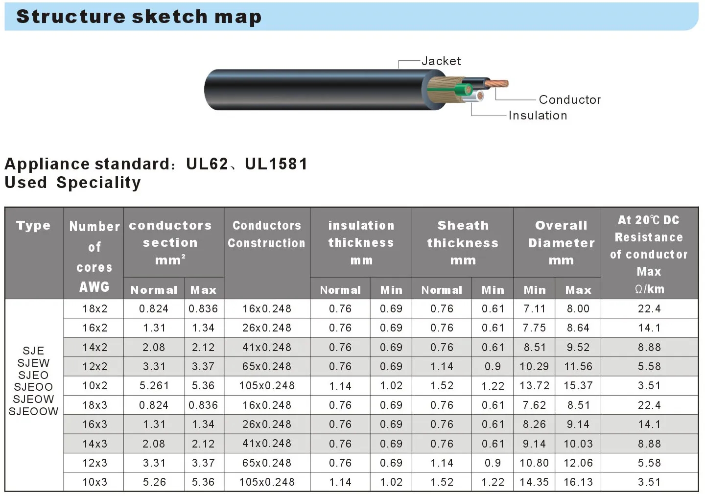 美国UL/CUL认证SJE,SJEO,SJEOO,SJEW,SJEOW,SJEOOW弹性体热塑性橡胶线TPE电线UL62标准